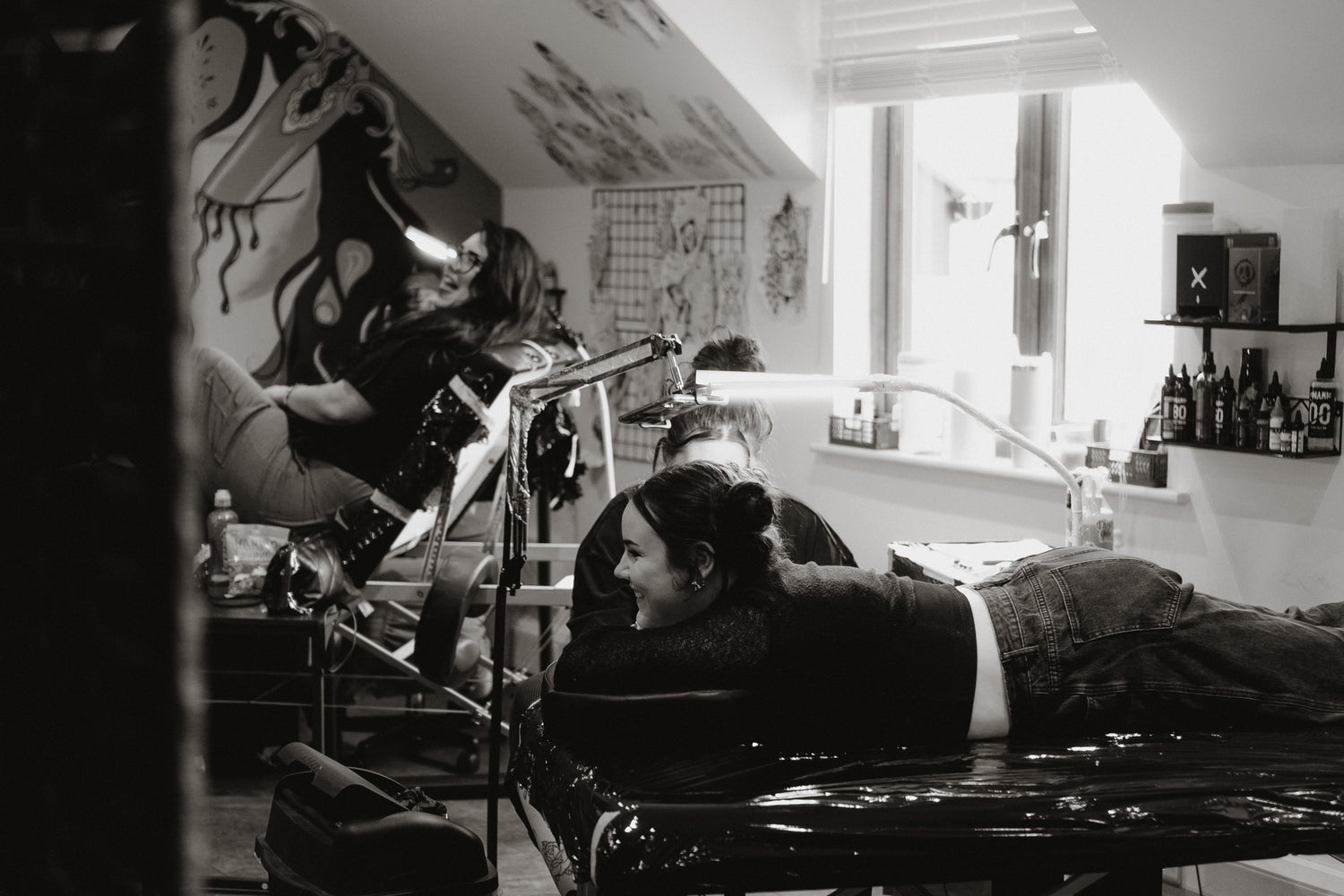 Feel completely at ease in our private studio, without the risk of just anyone walking in off the streets. There is an open floor plan but we always have privacy screens should you want one! All our clients comment on how at ease they feel which is a huge priority for us 🖤 We only have female artists at Blissful but all clients are more than welcome.